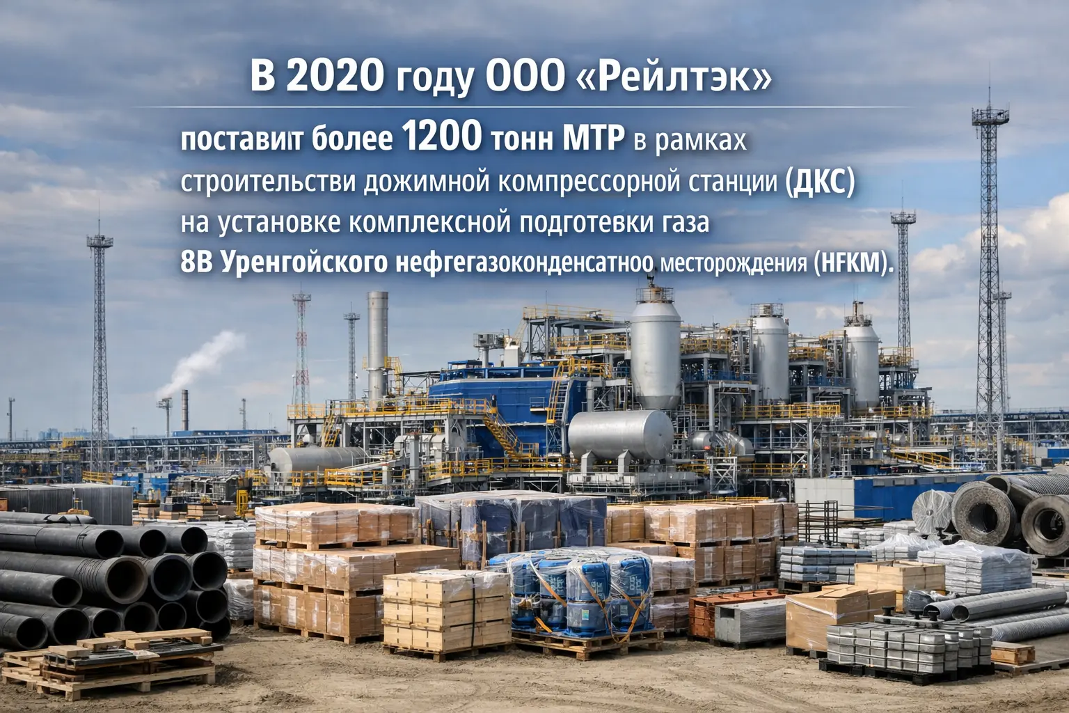 В 2020 году ООО «Рейлтэк» поставил более 1200 тонн МТР в рамках строительства дожимной компрессорной станции (ДКС) на установке комплексной подготовки газа 8В Уренгойского нефтегазоконденсатного месторождения (НГКМ).