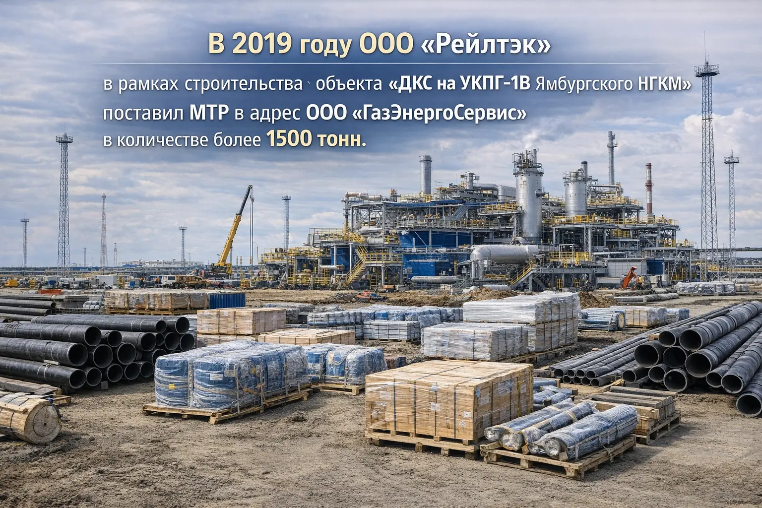 В 2019 году ООО «Рейлтэк» в рамках строительства объекта «ДКС на УКПГ-1В Ямбургского НГКМ» поставил МТР в адрес ООО "ГазЭнергоСервис" количестве более 1500 тонн.